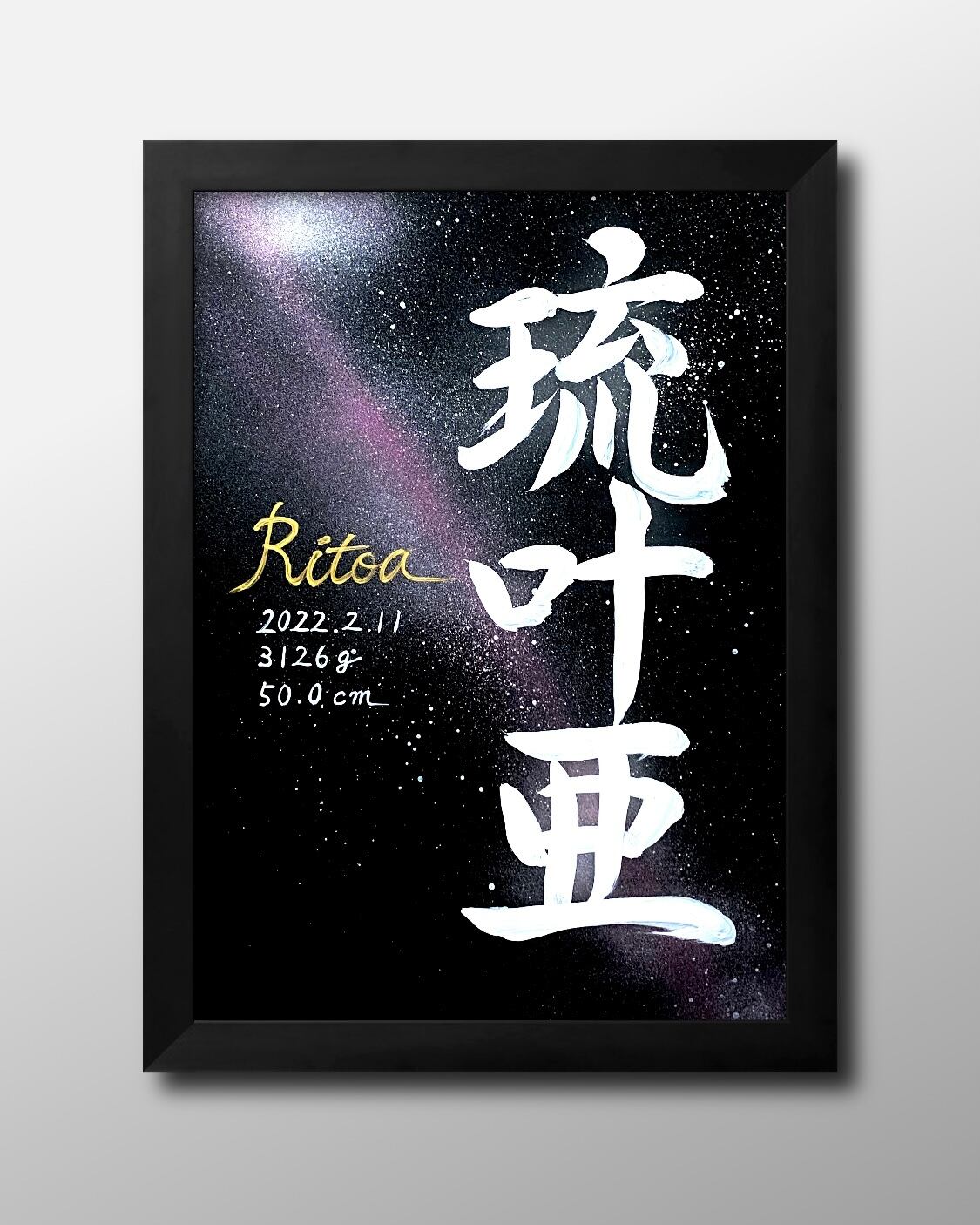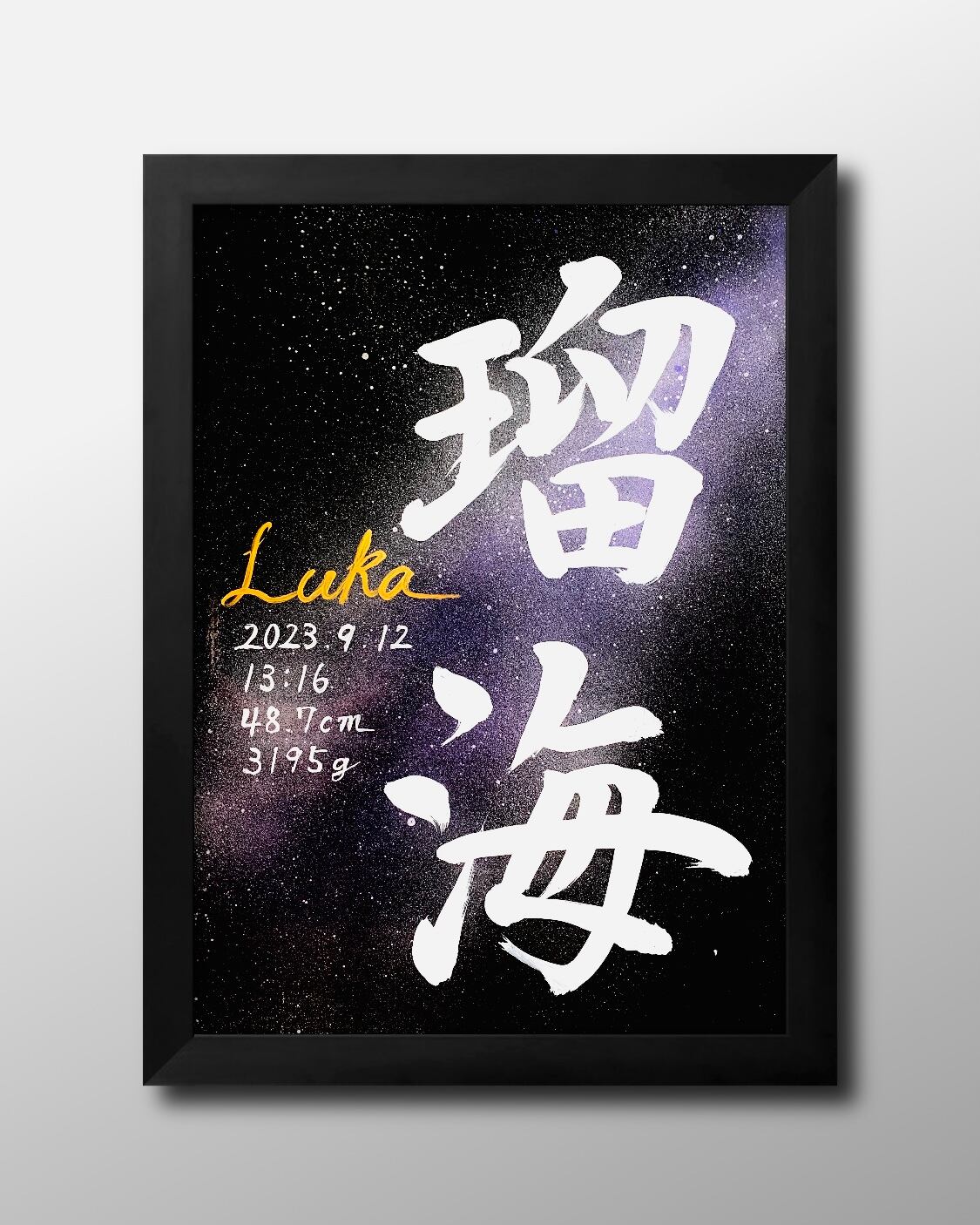 想像力をかき立て、宇宙の神秘を身近に感じられるアート作品「Galaxy」。光沢紙には煌めく銀河のスプレーアートが描かれ、アクリルガッシュでお名前をお入れしてお届けします。オリジナリティ溢れる一点もので、部屋の壁を彩るだけでなく、心にも響く存在感を放ちます。あなたの特別な空間に、ひとつ加えてみてはいかがでしょうか。